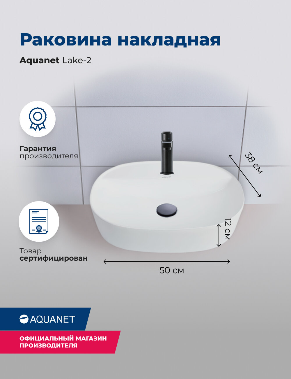 Раковина накладная Aquanet Lake 2 50x38 (211287)