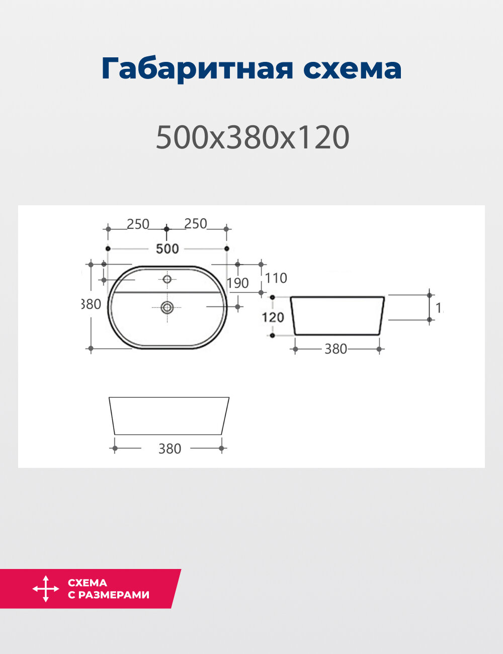 LAKE-2 Раковина керамическая накладная 500х380х120 (211287)