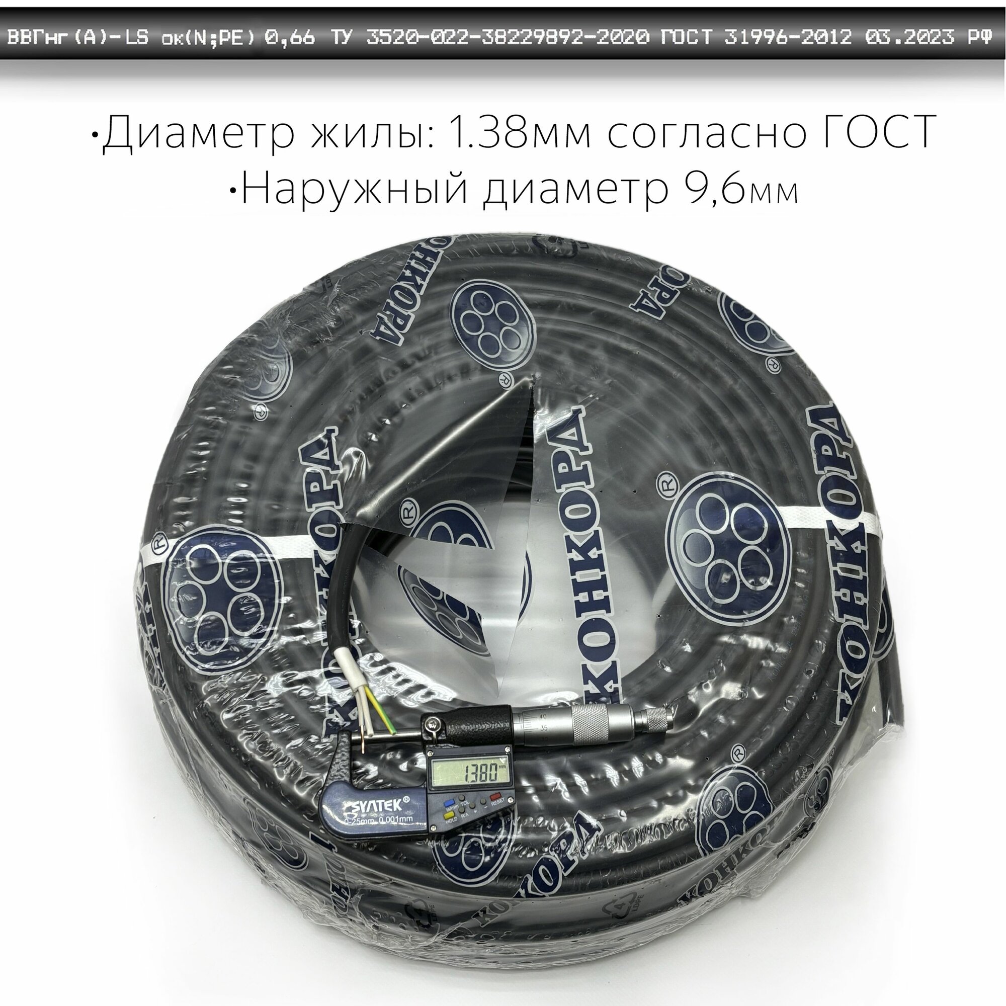Кабель силовой ВВГнг(А)-LS 3x1,5 (N,PE) ГОСТ Конкорд