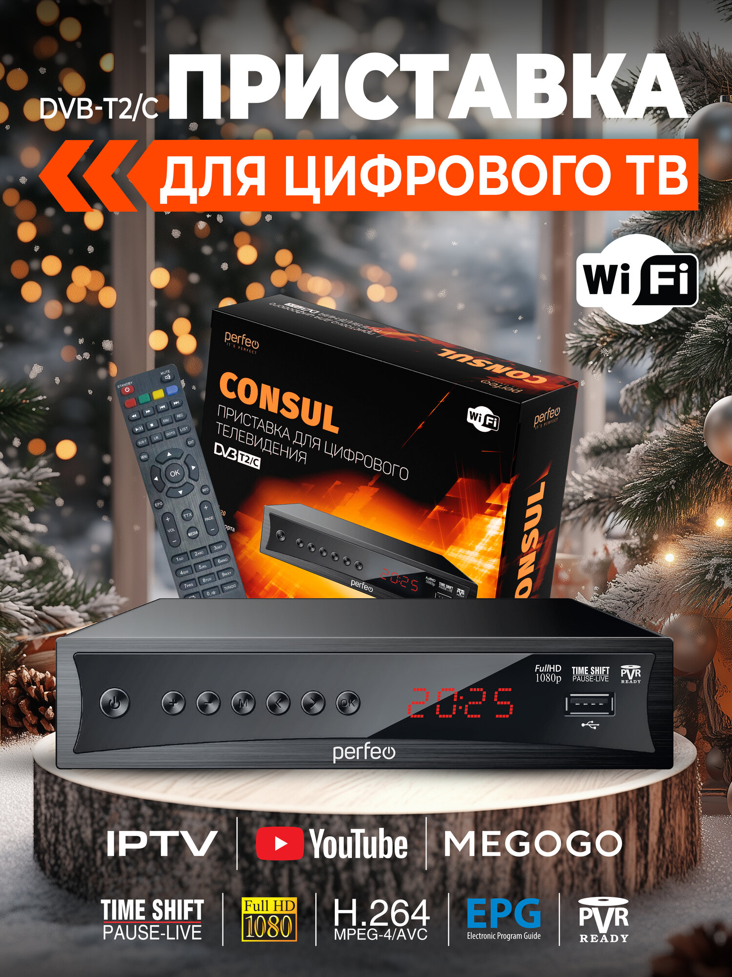 Купить Приставка DVB-T2/C Perfeo "CONSUL" для цифр.TV, Wi-Fi, IPTV, HDMI, 2 USB, DolbyDigital, пульт ДУ