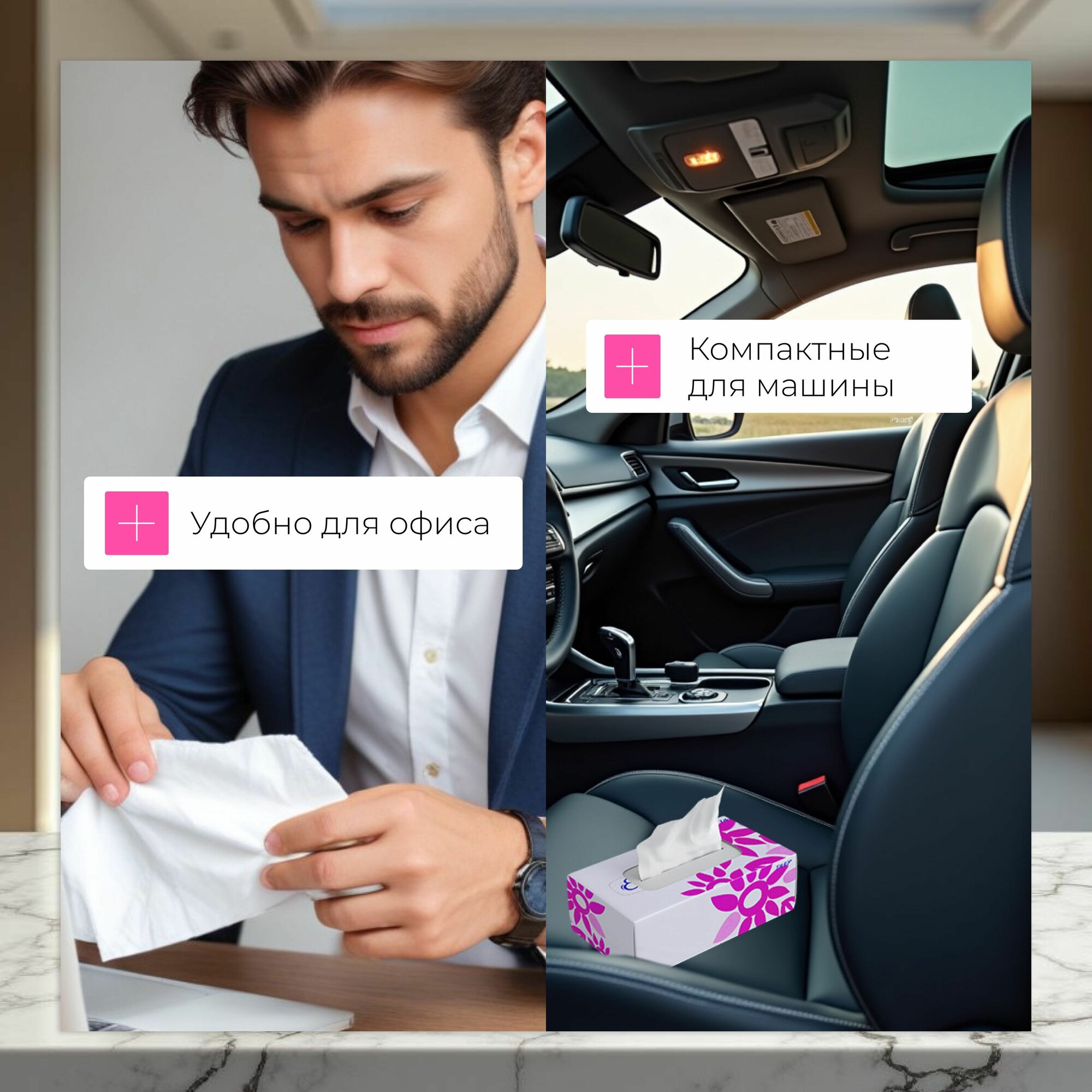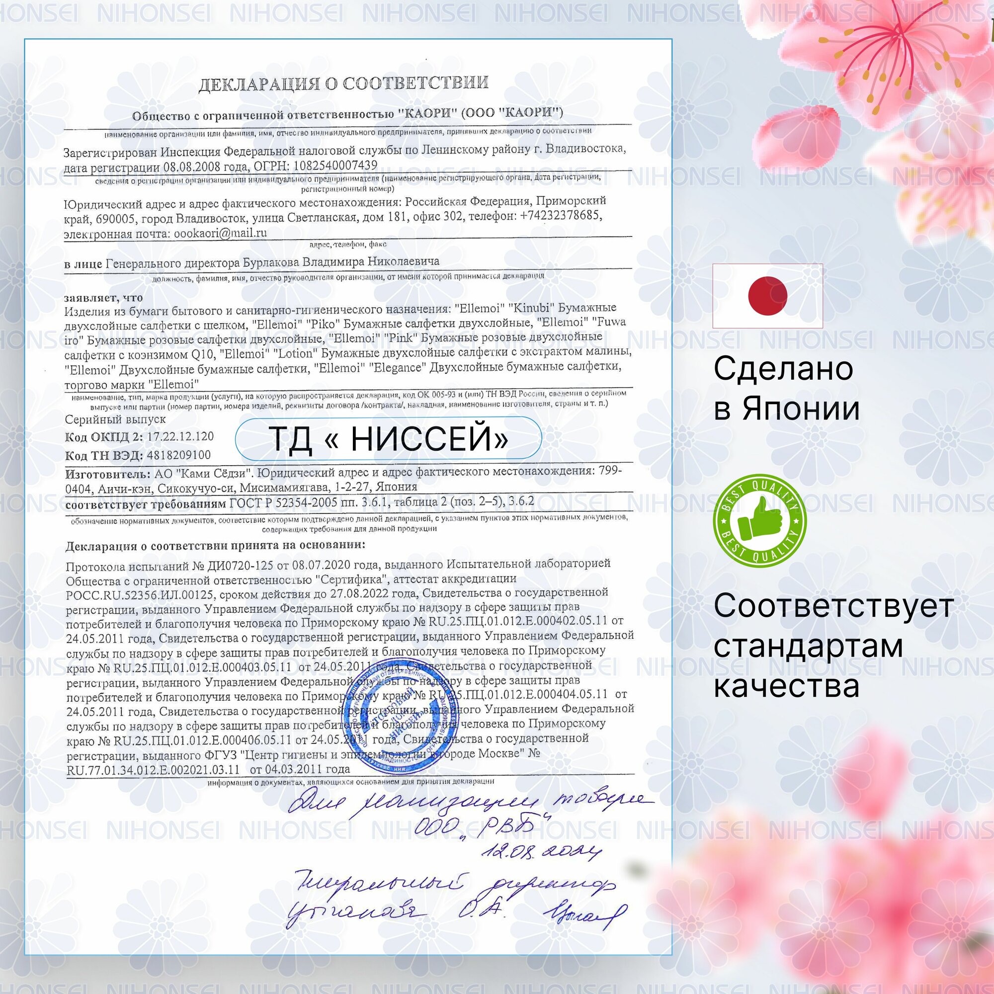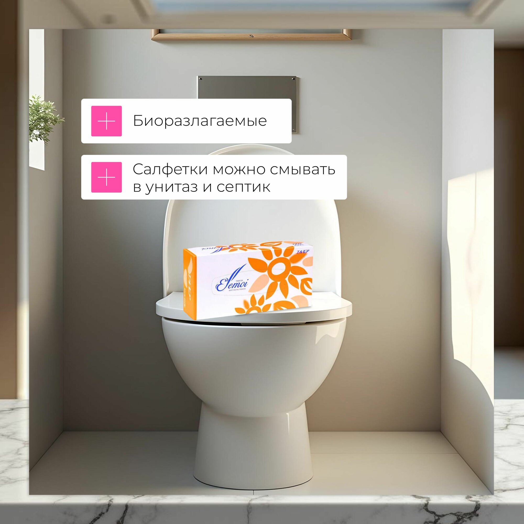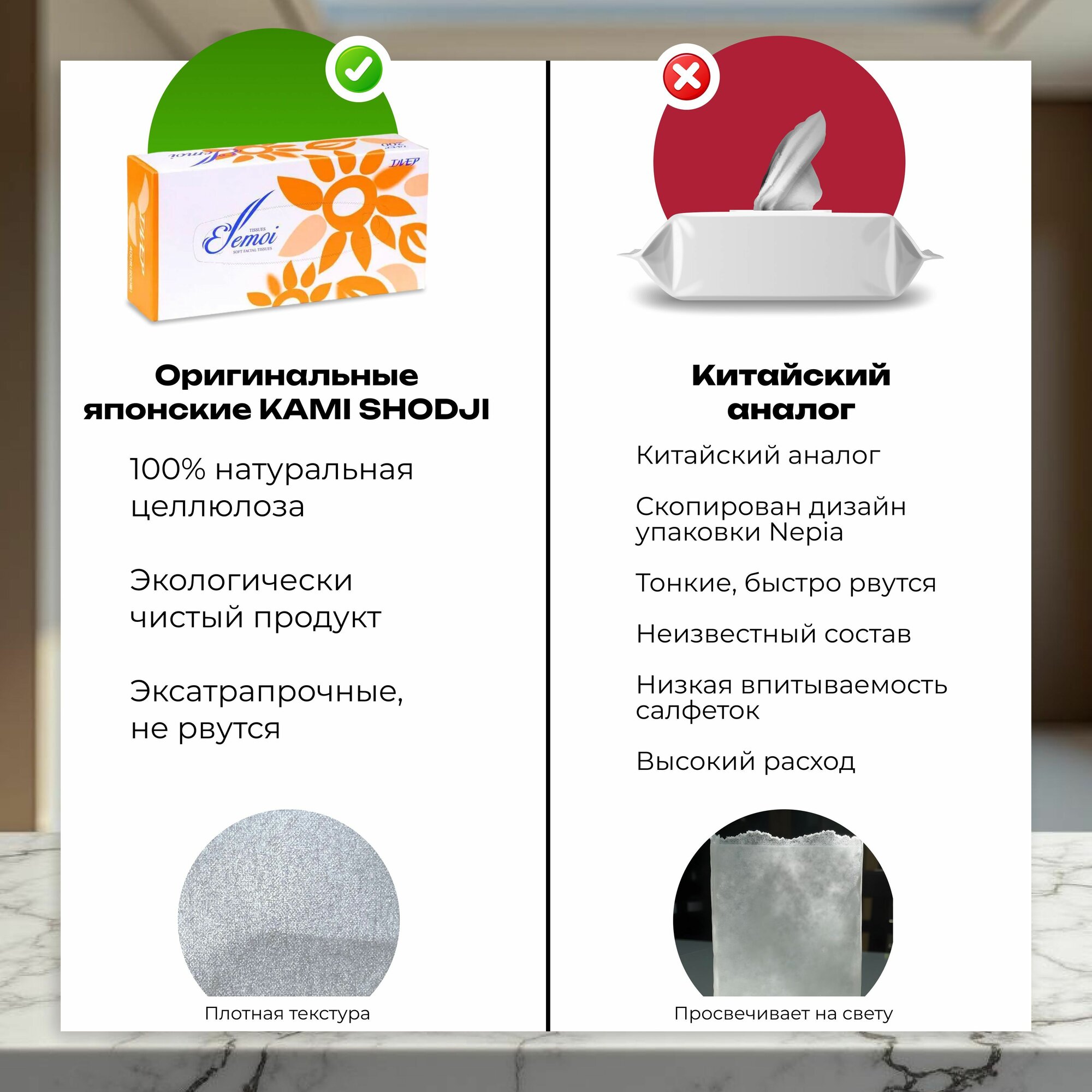 Салфетки бумажные в коробке Kami Shodji ELLEMOI 2 слоя, 200 шт., Япония, Платочки бумажные косметические сухие без ароматизаторов