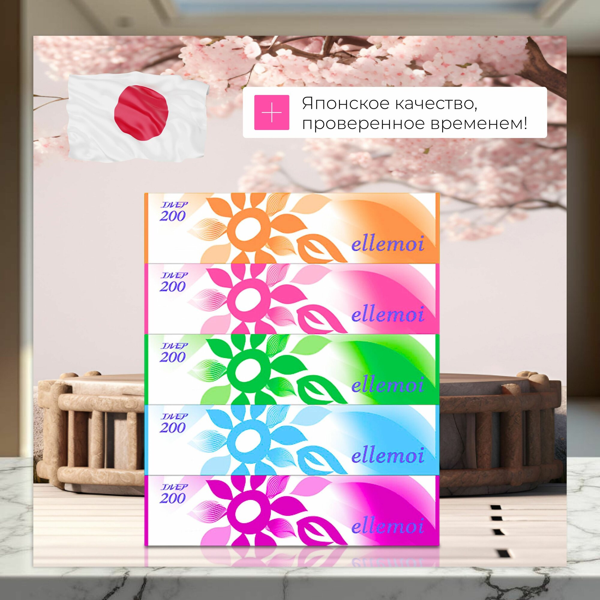 Салфетки бумажные / Kami Shodji Салфетки бумажные в коробке ELLEMOI 2 слоя, 5 уп х 200 шт., Япония / Платочки бумажные косметические / Японские гигиенические сухие салфетки без ароматизаторов