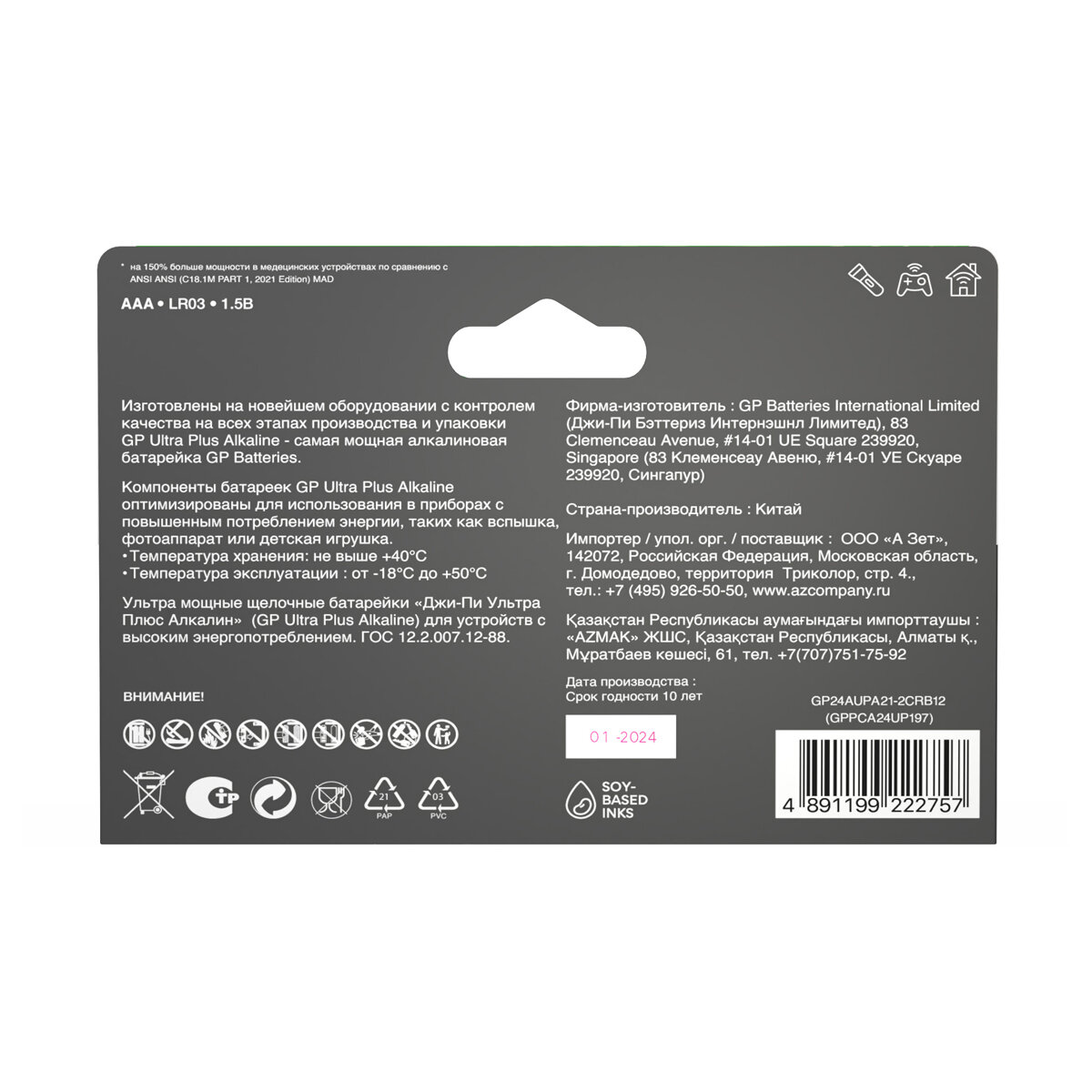 Батарейка AA - GP Ultra Plus Alkaline 15А 15AUPA21-2CRB12 96/768 (12 штук)