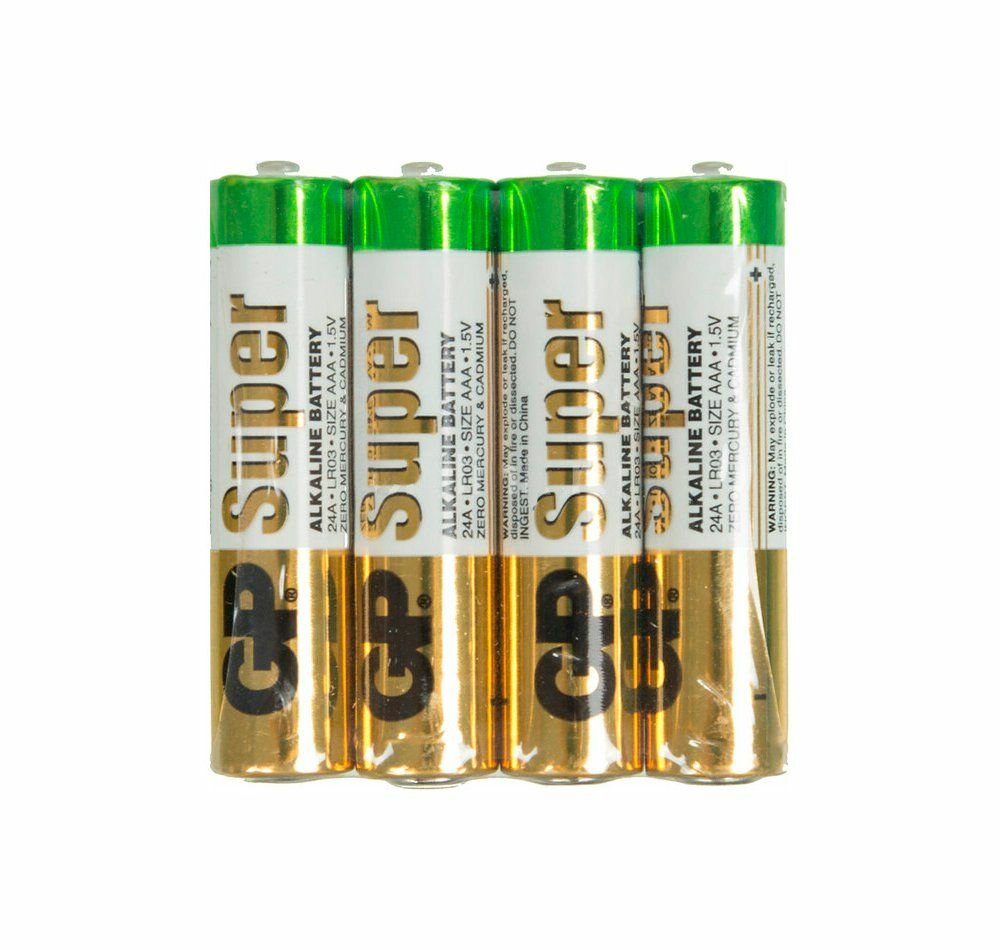 Батарейки комплект 4 шт., GP Super, AAA (LR03, 24А), алкалиновые, мизинчиковые, в пленке, 24ARS-2SB4 (цена за 1 ед.товара)