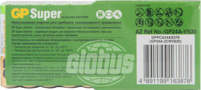 Сохранить30 батареек AAA GP Super Alkaline 24A-B10 24A LR03, в пленке, мизинчиковые интересное: