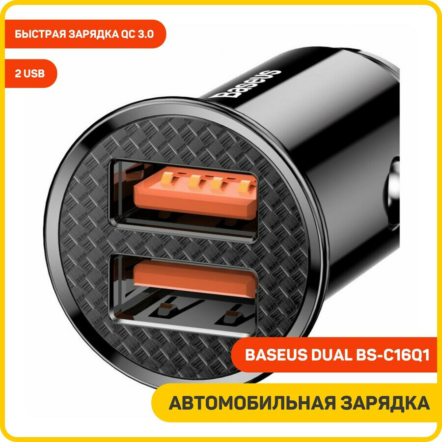 Автомобильное зарядное устройство (АЗУ) Baseus Dual BS-C16Q1 QC 3.0 (2 USB) 5 А, черный