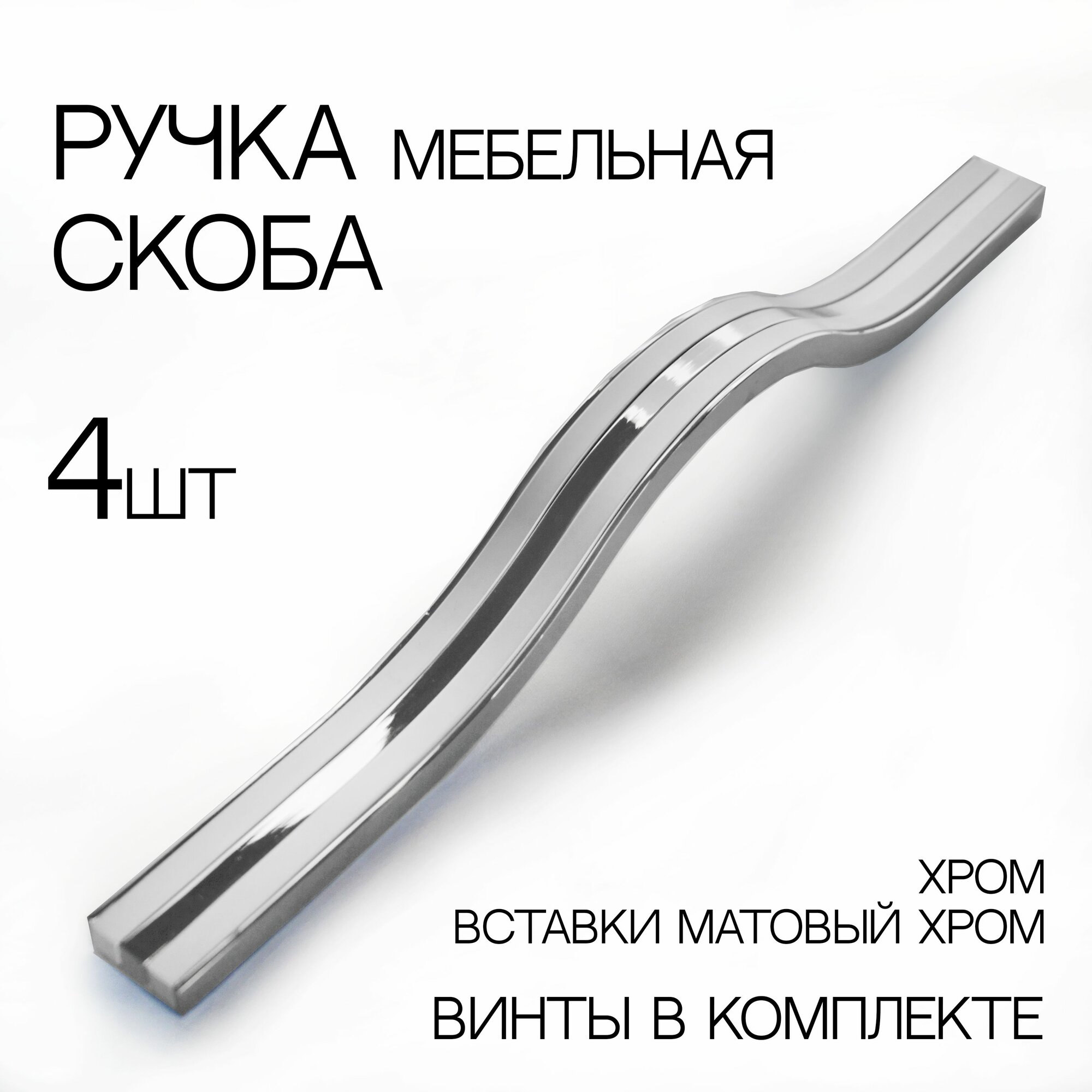Мебельная ручка, на 256 мм , 4 шт., цвет матовый хром/хром глянец