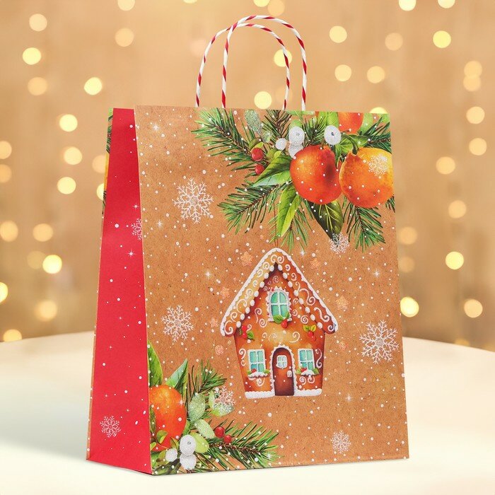 Пакет бумажный подарочный новогодний крафт "Пряничный домик" 18 х 22,3 х 10 см. (комплект из 26 шт) интересное: