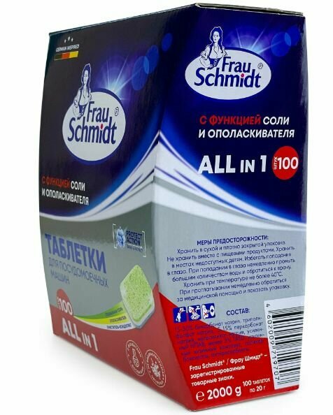 Купить Frau Schmidt Таблетки для посудомоечных машин всё в одном 100 шт 2000 гр