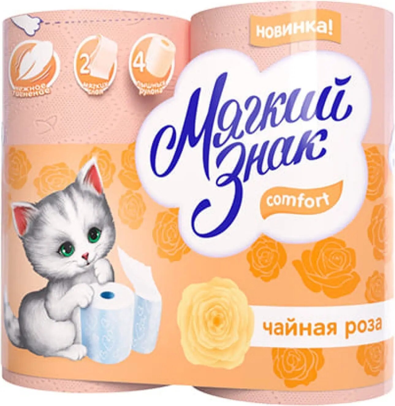 Мягкий Знак Туалетная бумага Comfort, Чайная роза, 2-слойная, 4 рулона интересное: