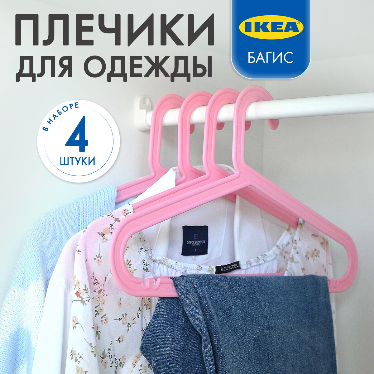 BAGIS багис плечики, д/дома/улицы 4 шт розовый