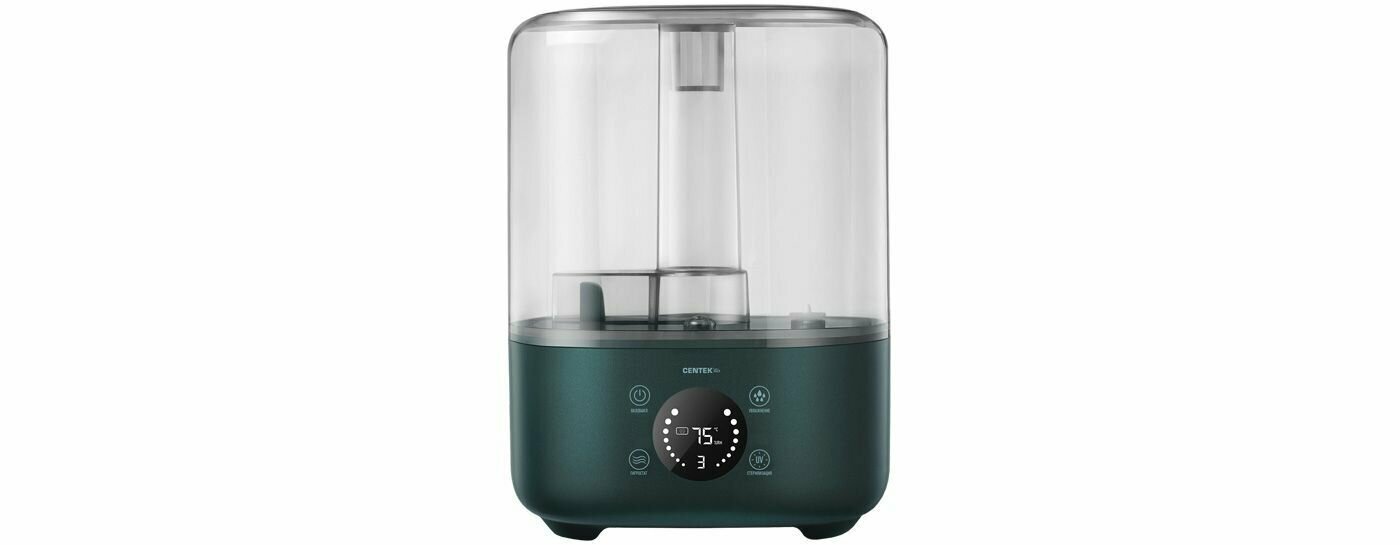 Ультразвуковой увлажнитель воздуха для квартиры CENTEK СТ-5103: 300мл/ч, 4.5л, 38дБ, LCD-сенсор, верхний залив, ароматизация интересное: