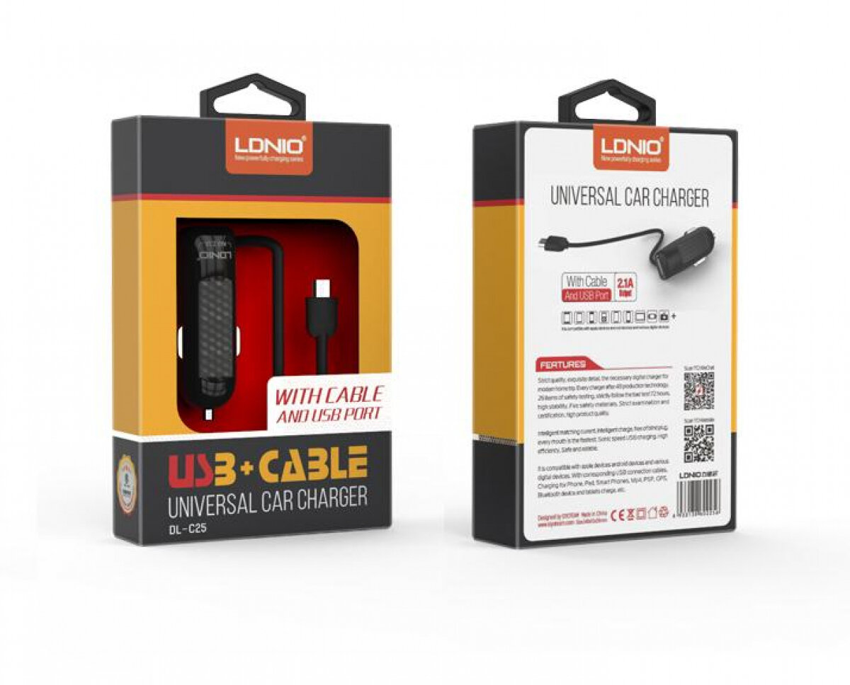 Ниже Вы можете прочитать отзывы на Автомобильное зарядное устройство LDNIO DL-C25 с встроенным кабелем MicroUSB 0.8м, USB разъем, 2.1А, черный, ознакомится с подробными характеристиками, посмотреть интересные обзоры и фотографии на Автомобильное зарядное устройство LDNIO DL-C25 с встроенным кабелем MicroUSB 0.8м, USB разъем, 2.1А, черный.