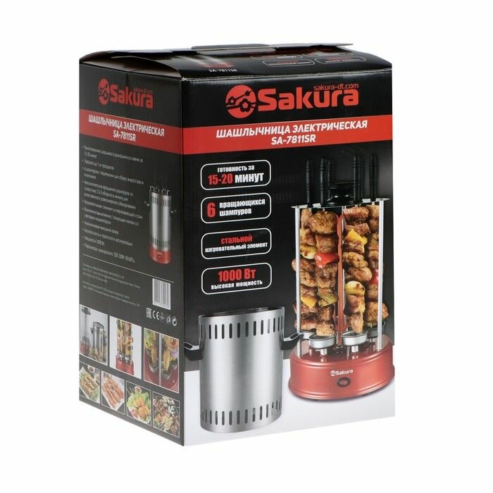 Шашлычница электрическая Sakura Sa-7811sr 1000Вт серебристый/красный . интересное: