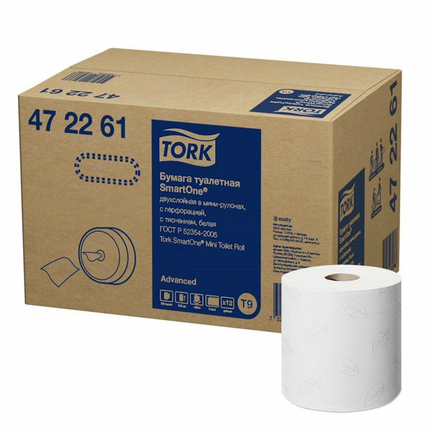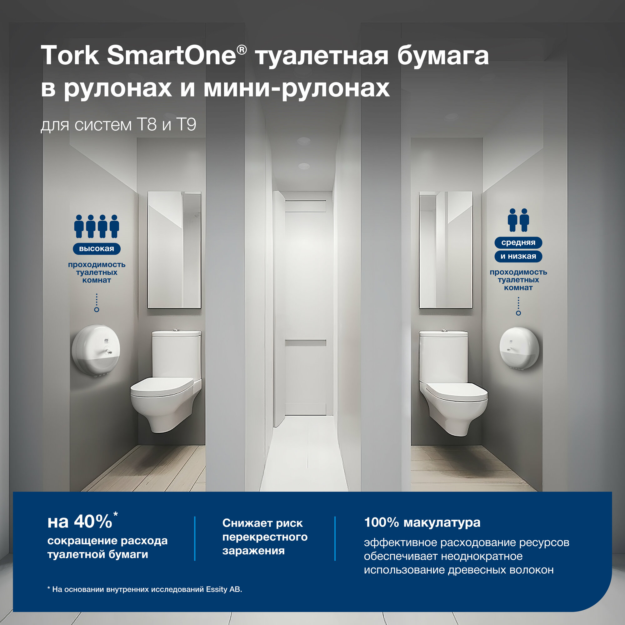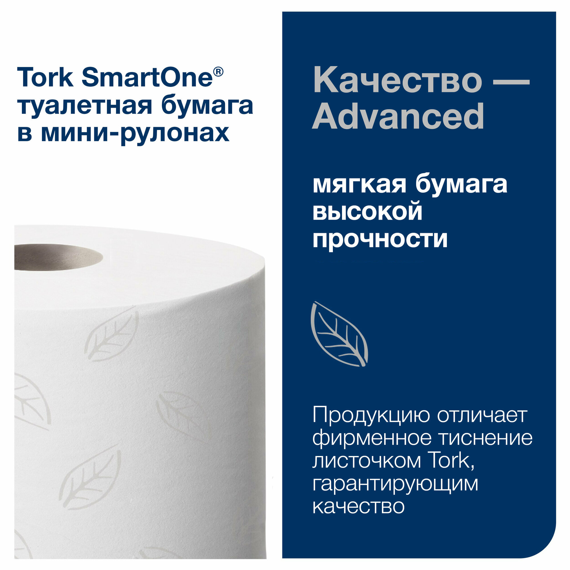 Туалетная бумага Tork SmartOne mini Advanced, в мини-рулоне мягкая, система T9, 130 м, 2 сл., белая, 1 рулон (арт: 472261)
