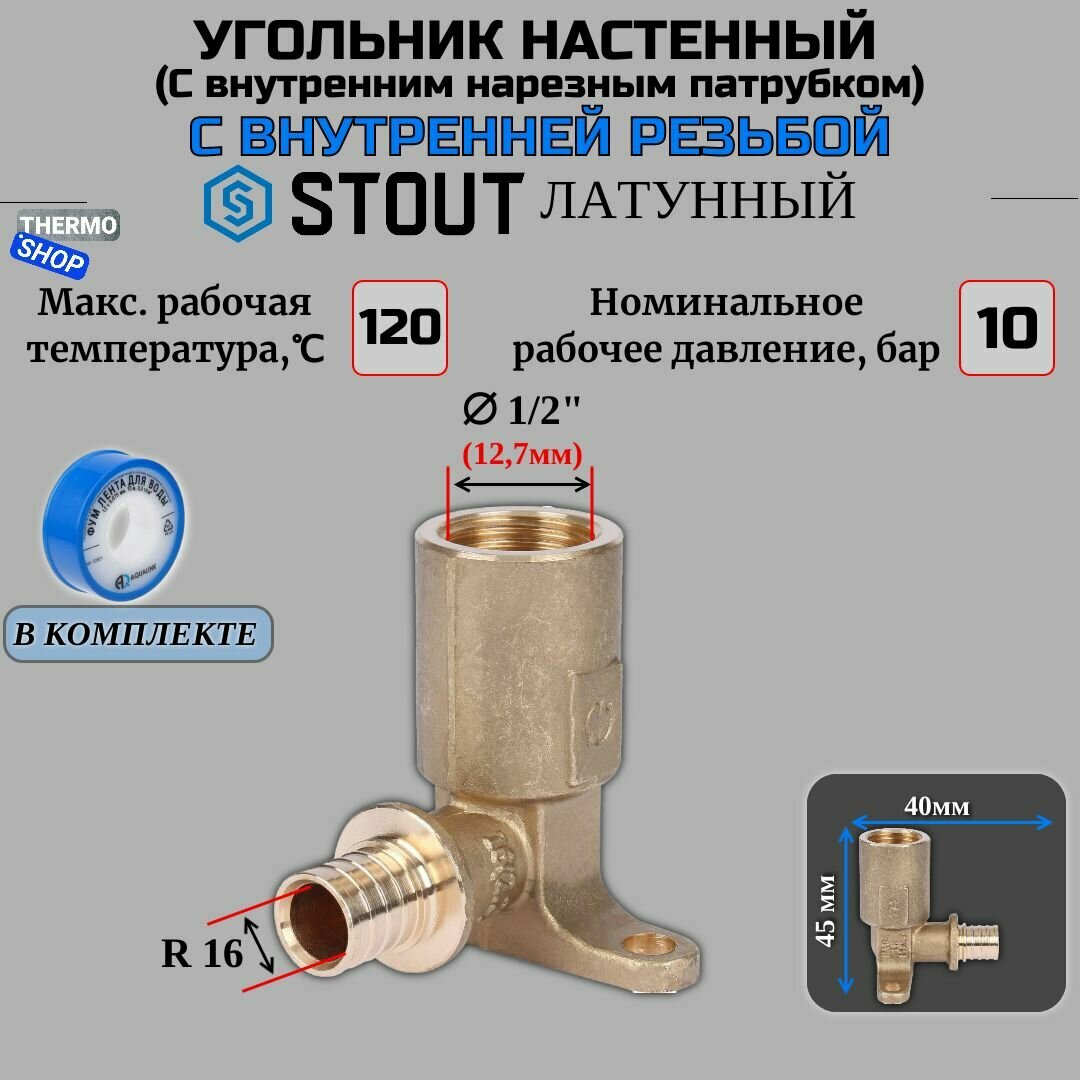Угольник настенный с креплением с длинным нарезным патрубком аксиальный STOUT 16xRp 1/2" SFA-0032-00