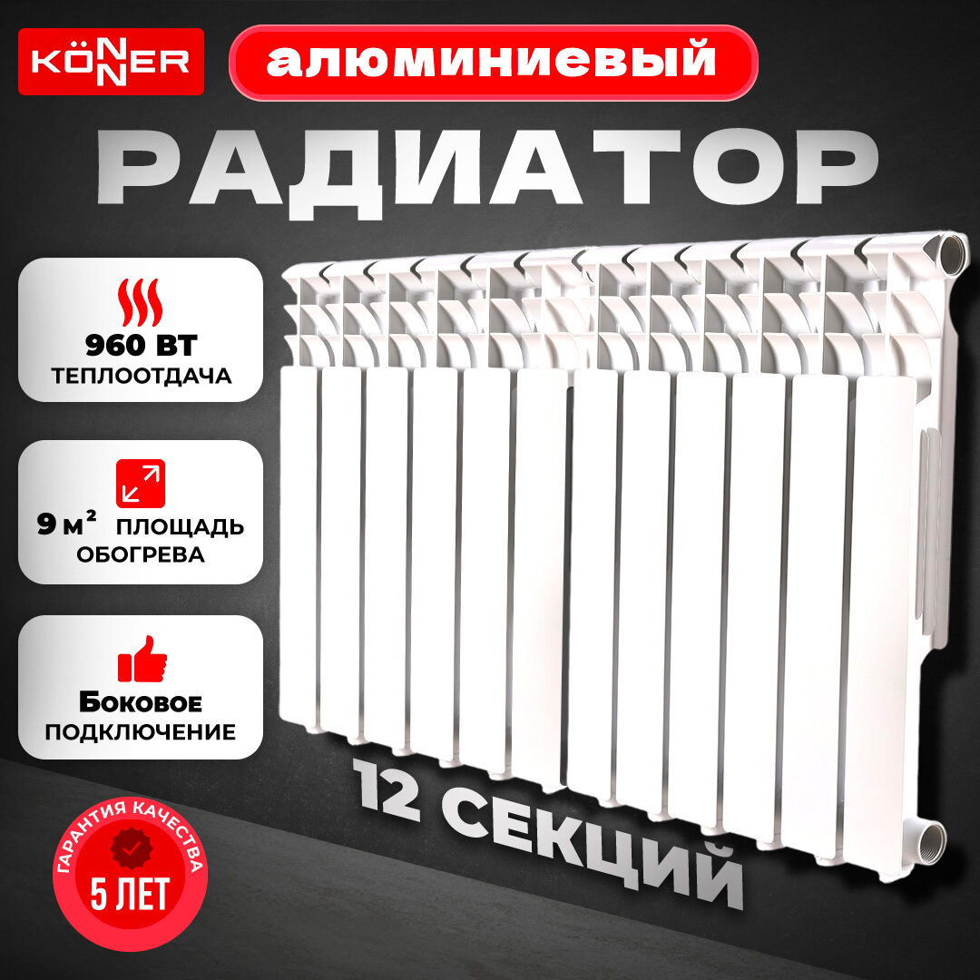 Радиатор отопления алюминиевый (батарея) KONNER LUX-200, 12 секций интересное: