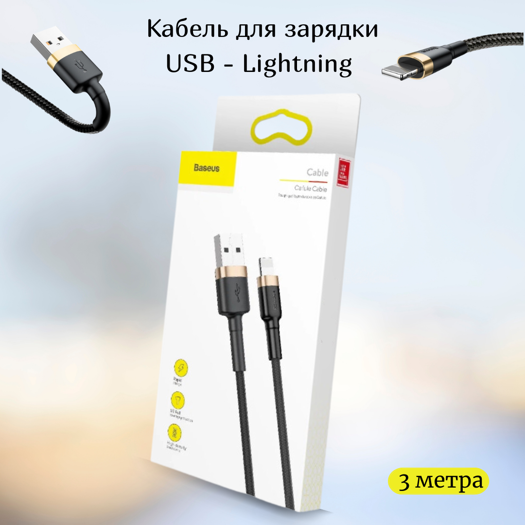 Кабель для айфон USB BASEUS Cafule USB - Lightning, 2А, 10W, 3 м, черный+золотой