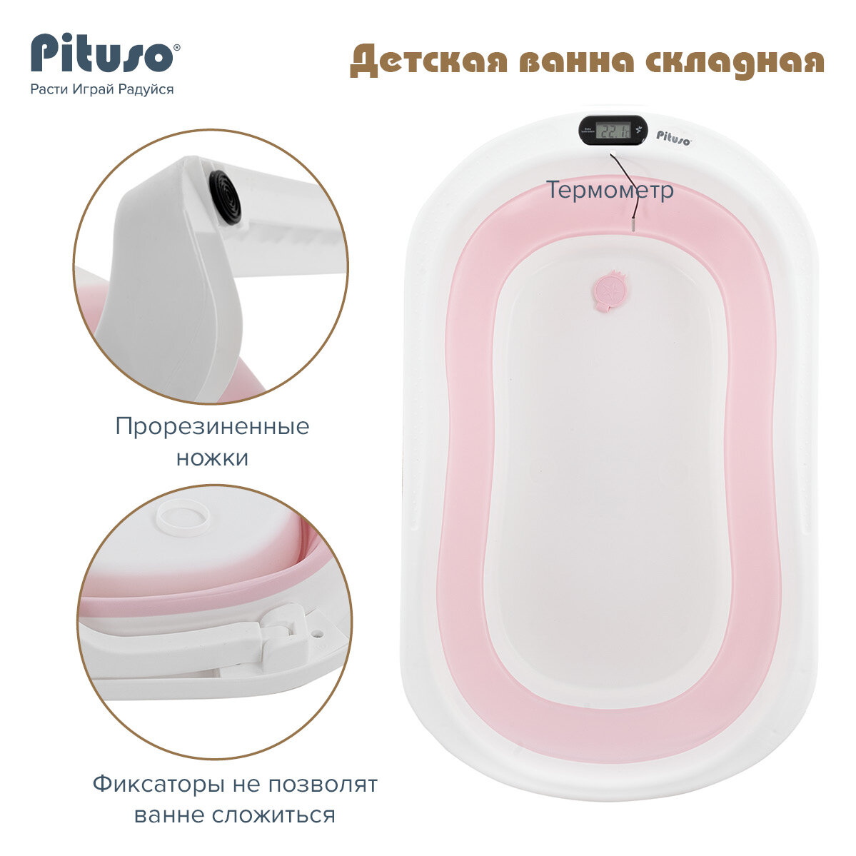 Купить Ванночка для новорожденных Pituso 75 см,складная, со сливом и встроенным термометром, Pink/Розовый