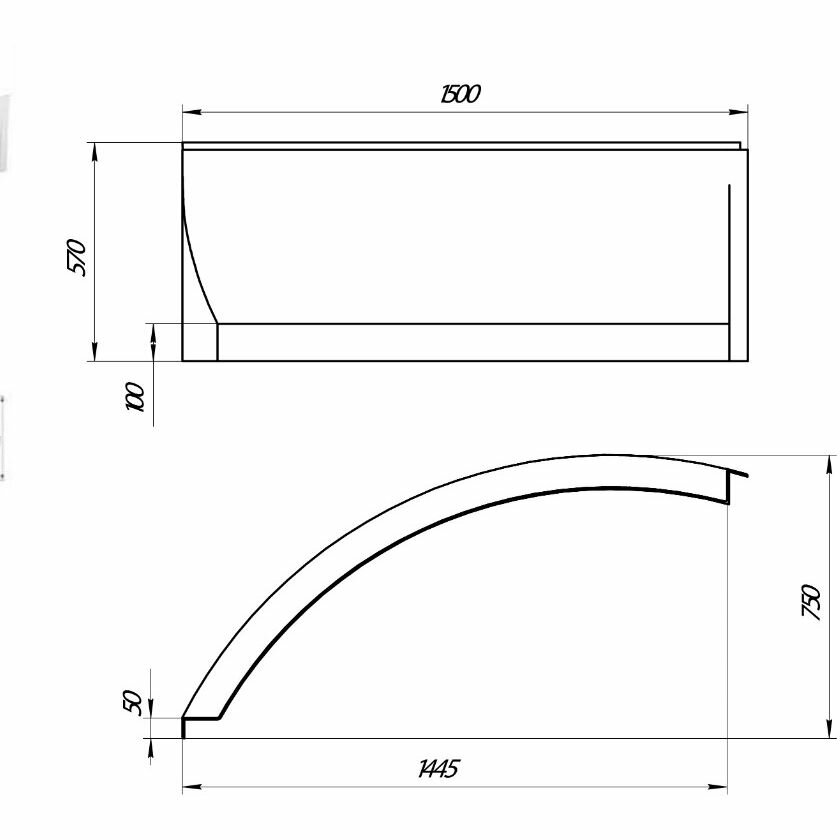 Фронтальная панель для ванны 1MarKa Piccolo 150R 02пк1770п