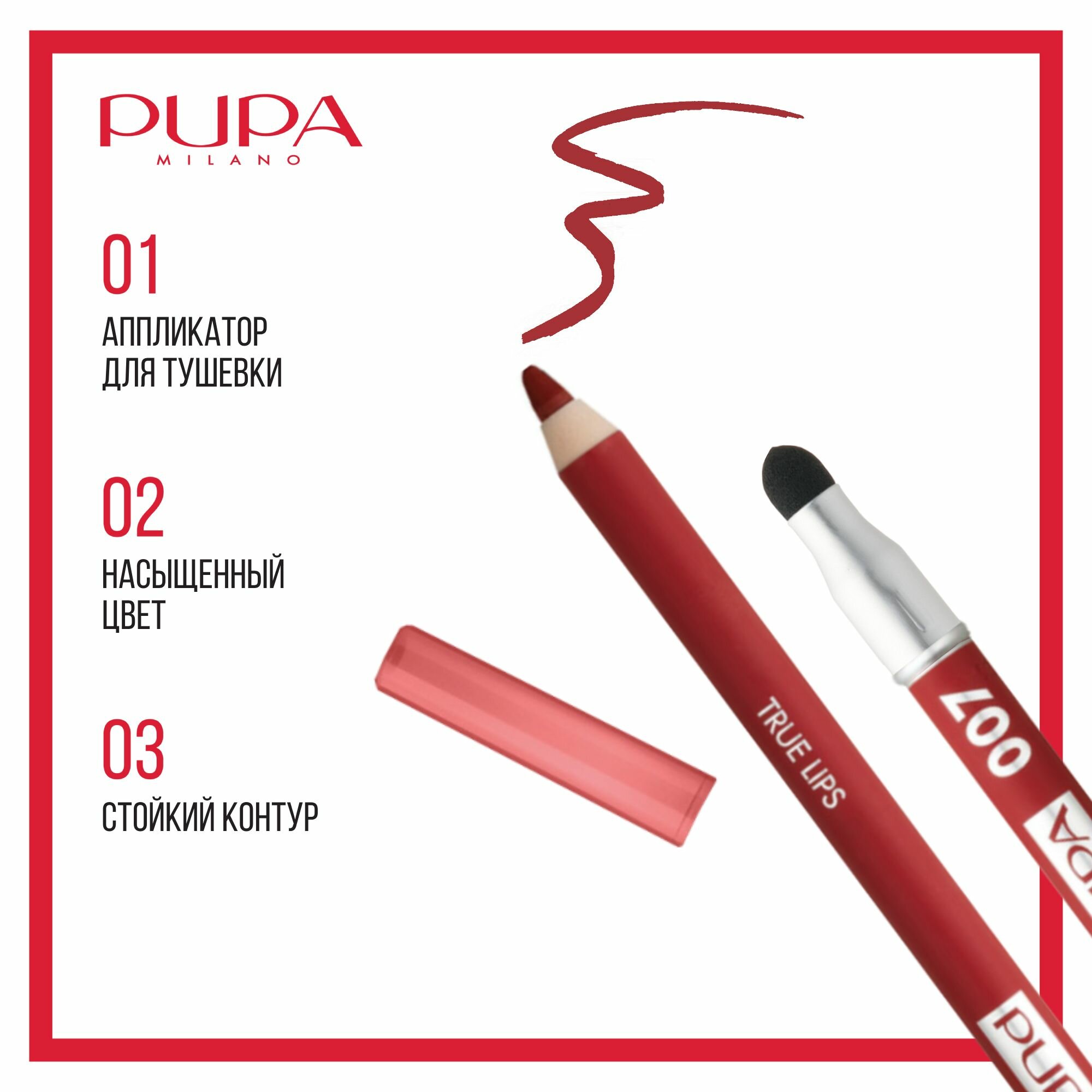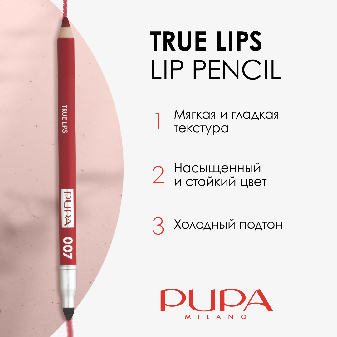Купить PUPA Карандаш для губ стойкий матовый TRUE LIPS №007 шокирующий красный