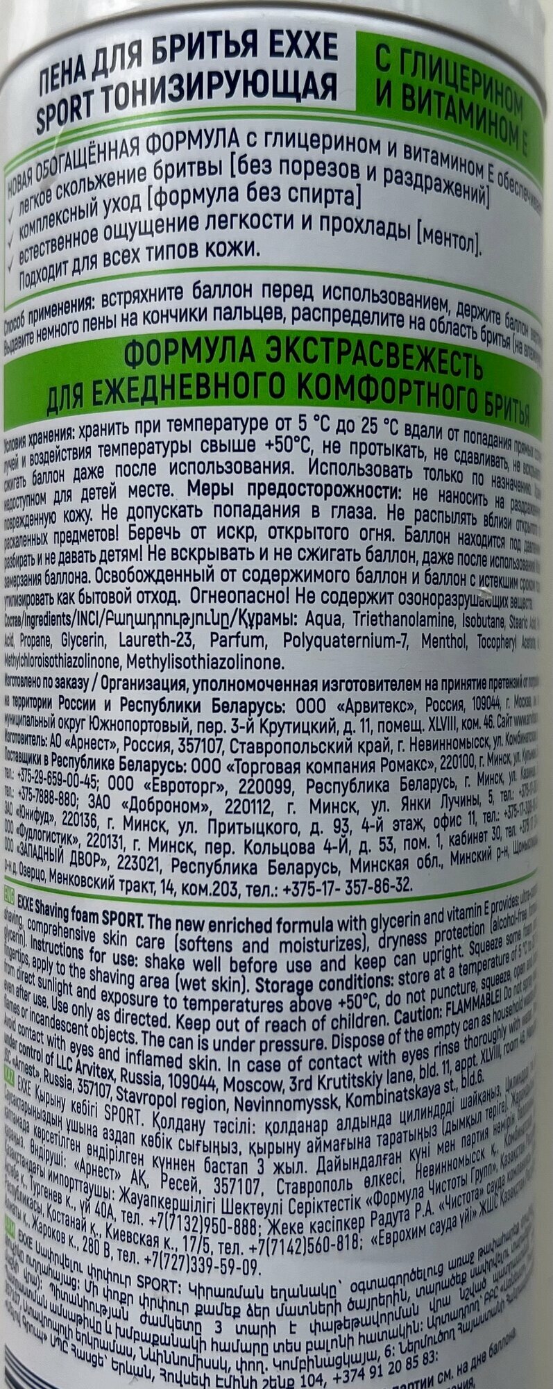 Ниже Вы можете прочитать отзывы на Пена для бритья "Exxe" Sport, тонизирущая, с витамином Е, 200мл, ознакомится с подробными характеристиками, посмотреть интересные обзоры и фотографии на Пена для бритья "Exxe" Sport, тонизирущая, с витамином Е, 200мл.
