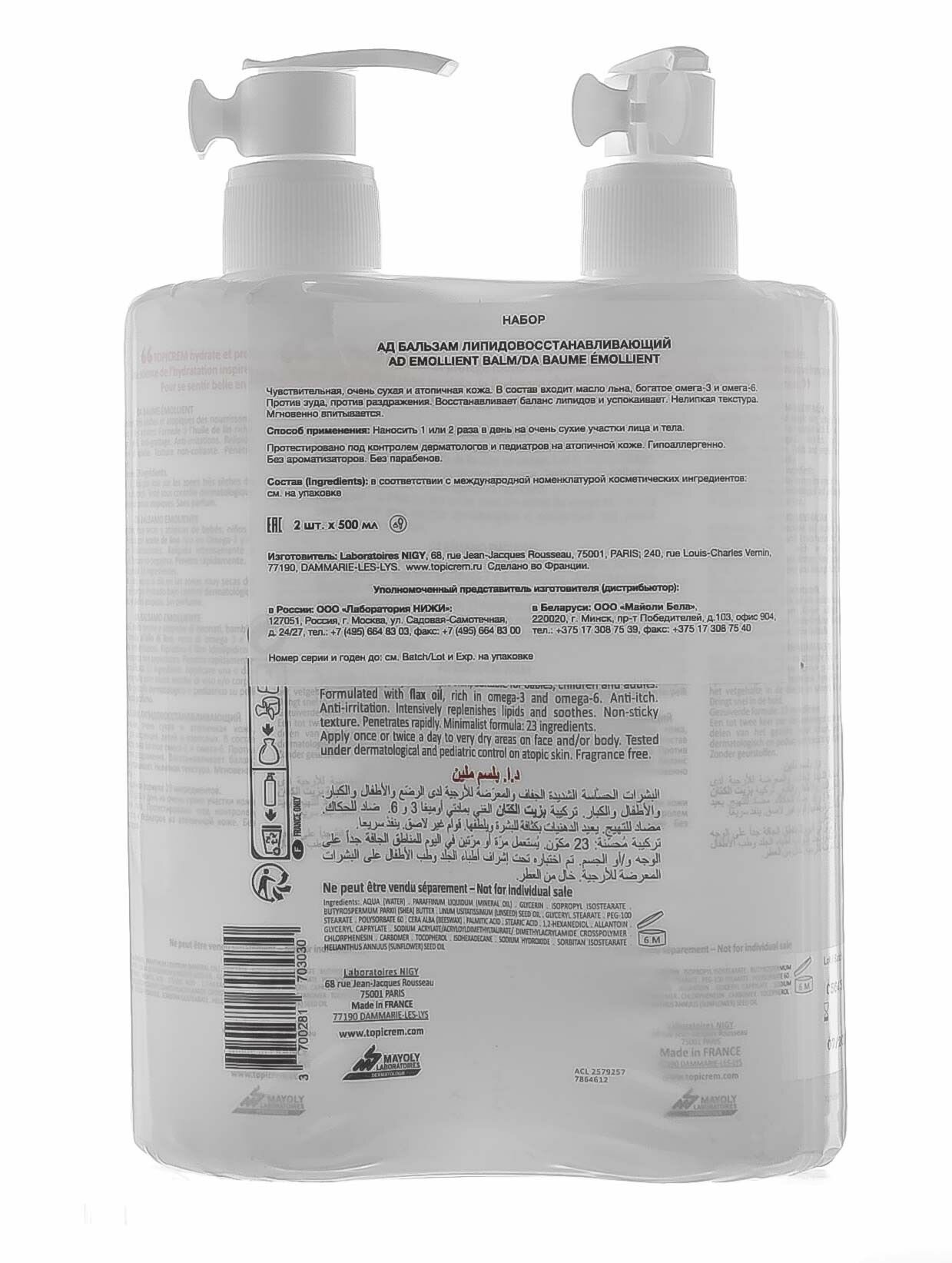 Topicrem АД дуопак: Бальзам липидовосстанавливающий 2 шт * 500мл