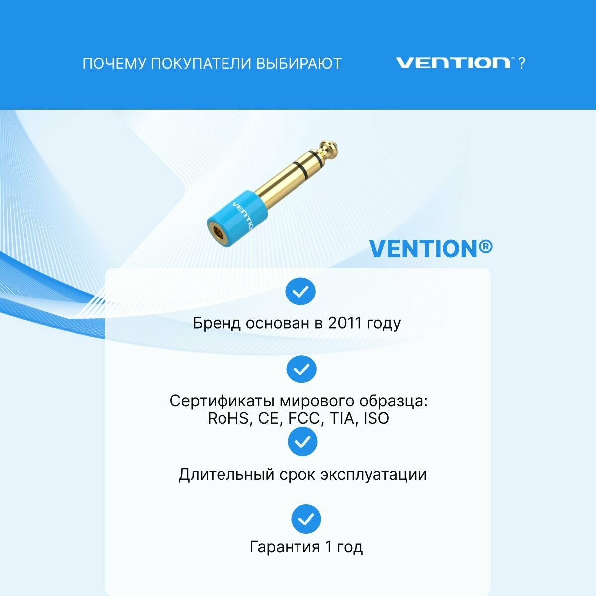 Переходник VENTION Jack 3.5 mm F/6.5 mm M, голубой