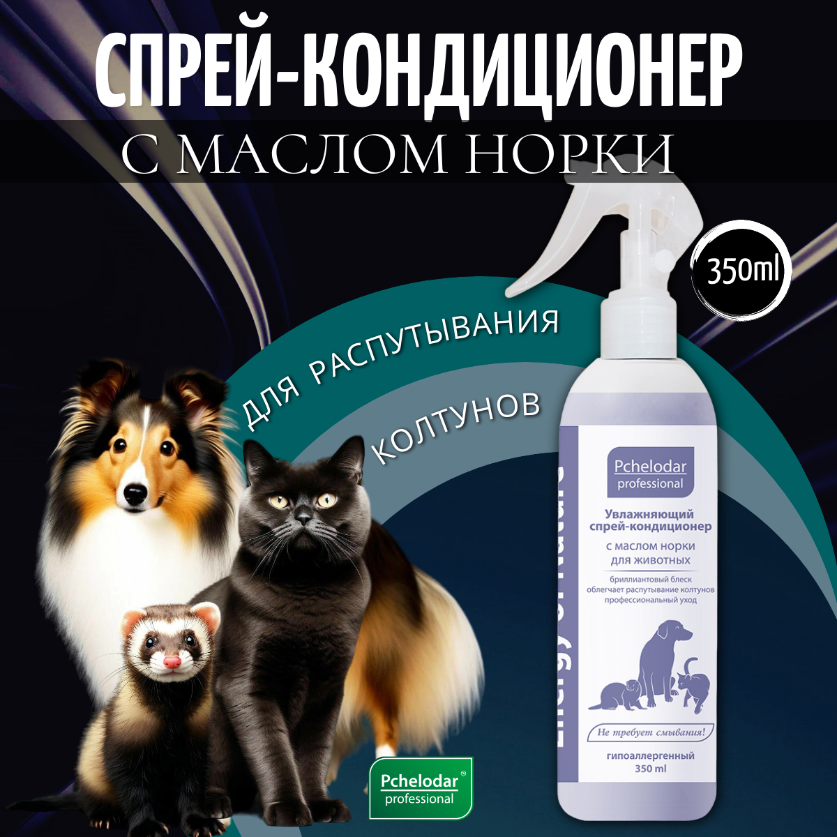 Спрей-кондиционер для животных PCHELODAR увлажняющий с маслом норки для распутывания колтунов (350 мл)