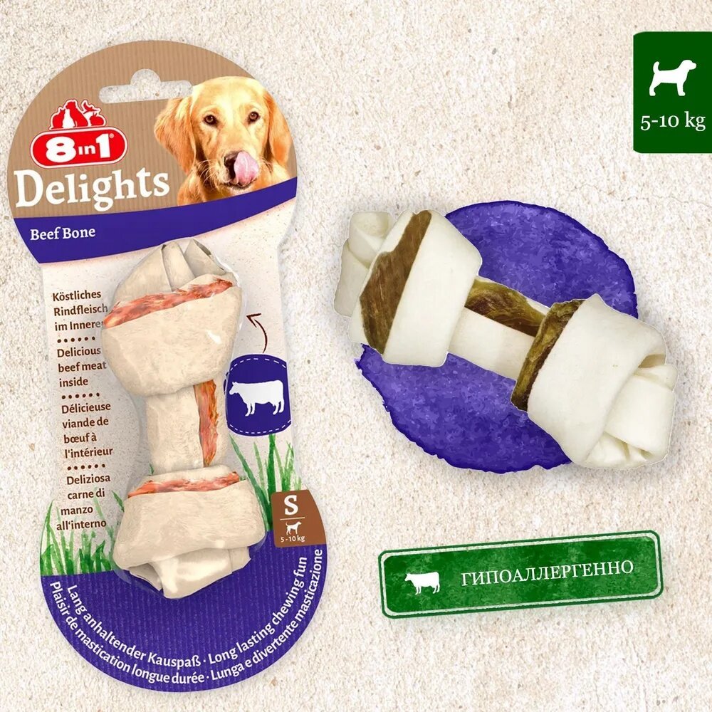 8in1 Лакомство для собак Delights Beef Косточка S / 11 см / 1 шт. х 35 г