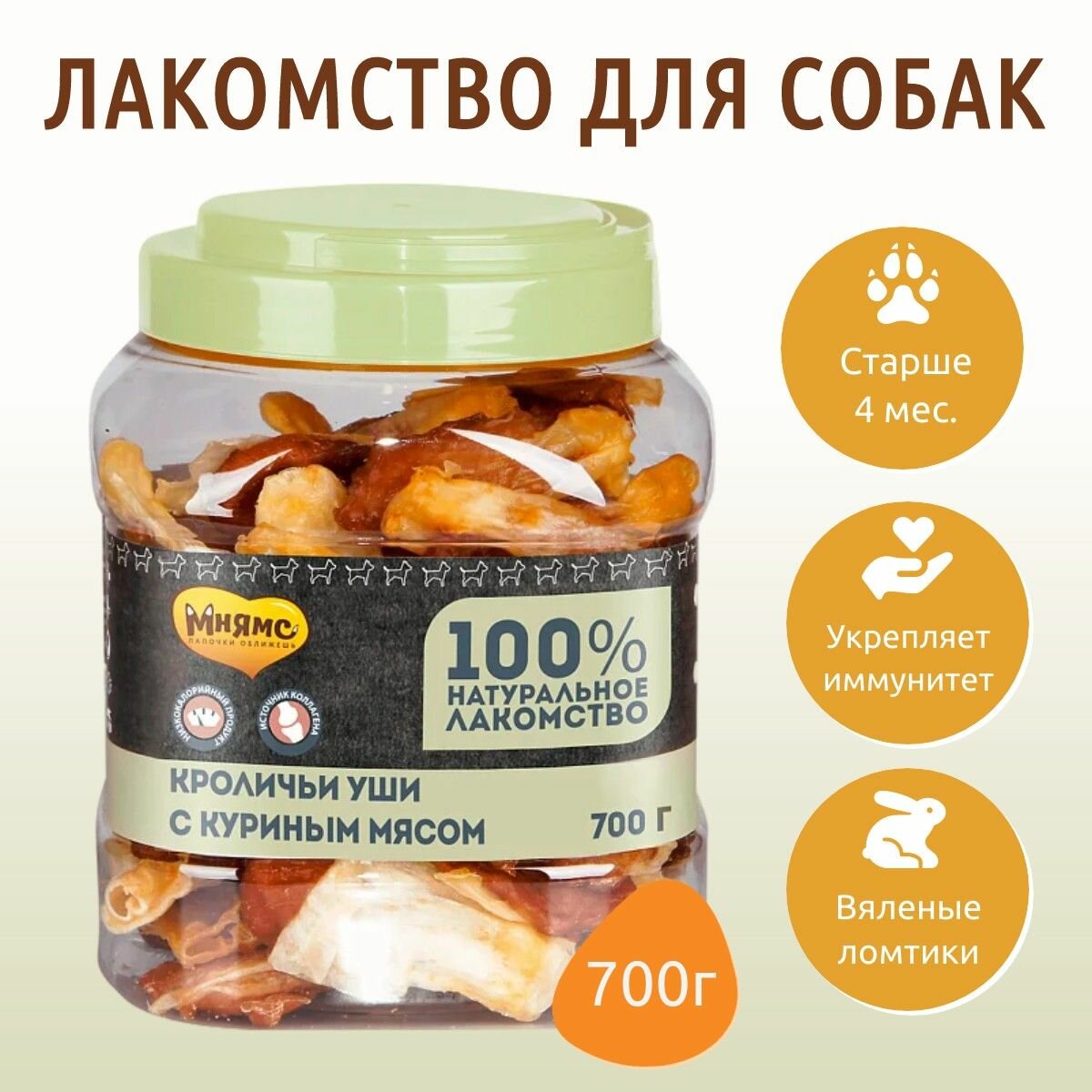 Лакомство мнямс для собак кроличьи уши с куриным мясом (700 гр)