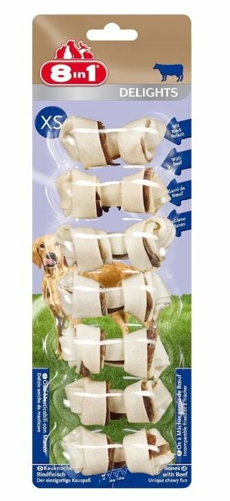 Купить Лакомство 8in1 косточки Beef Delights для собак мелких пород с говядиной XS, 7шт 7,5 см