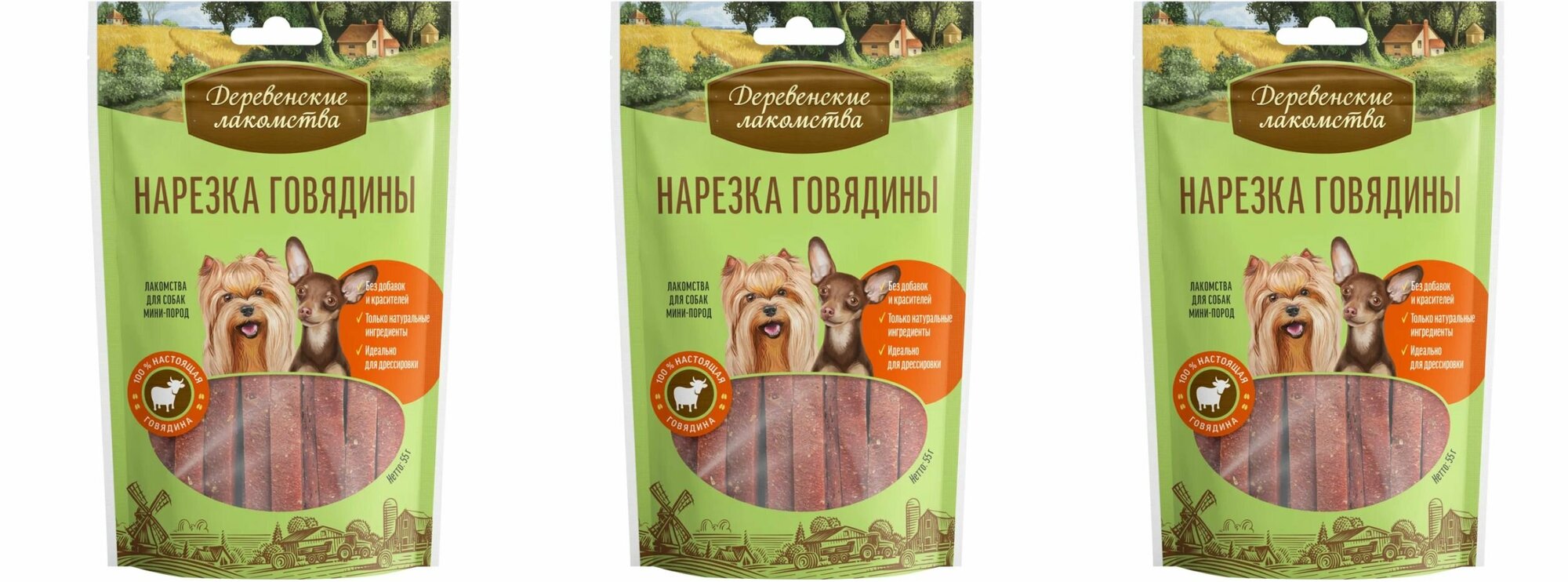 Деревенские лакомства 3шт х 55г нарезка говядины для собак мини-пород