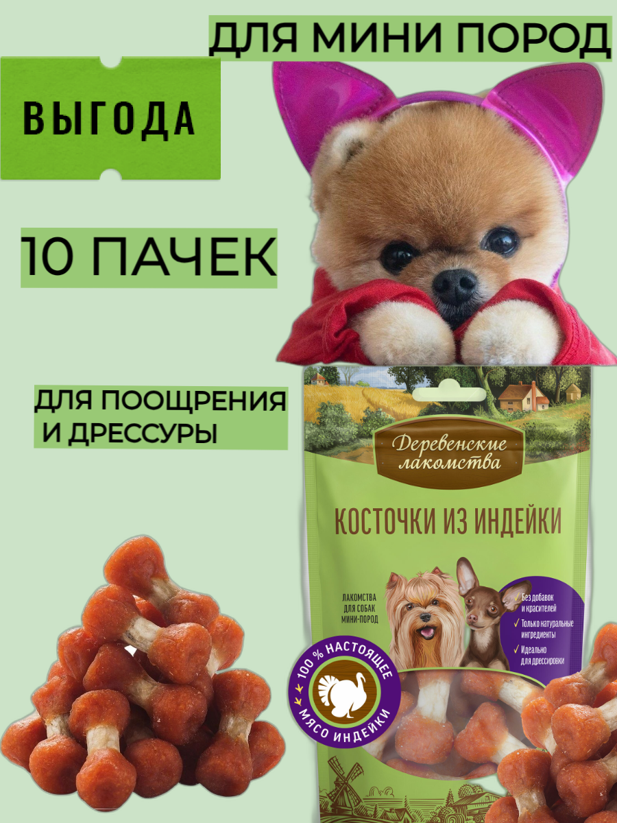 Деревенские Лакомства косточки из индейки для собак малых пород 10 шт х 55 г