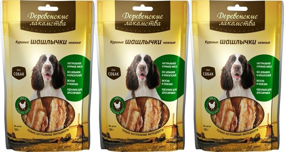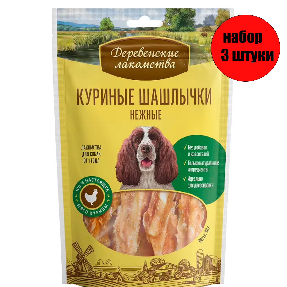 Деревенские лакомства для собак Куриные шашлычки нежные 90г, 3 упаковки