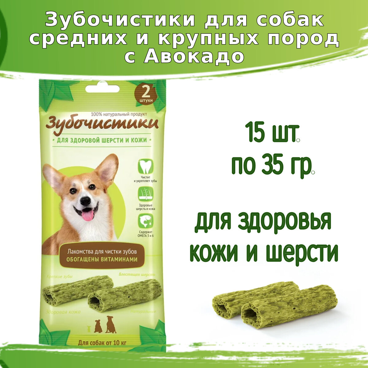 Зубочистики 35 г авокадо лакомство с витаминами для собак средних пород 10-25 кг