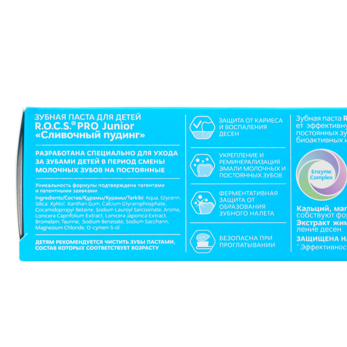 Детская зубная паста рокс ROCS Junior Сливочный пудинг от 6 лет, 74 г