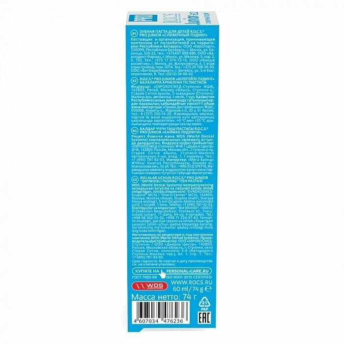 Купить Детская зубная паста R.o.c.s. R.O.C.S Junior Сливочный пудинг, 74 г