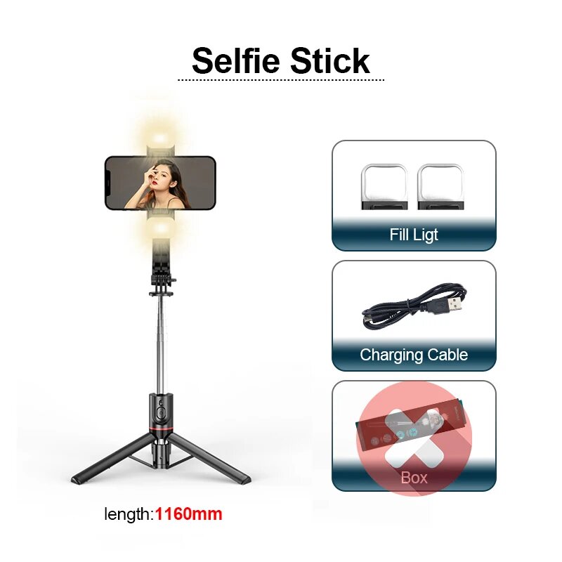Селфи-палка FANGTUOSI, 1160 мм, bluetooth, для Android и IOS, With Light and box