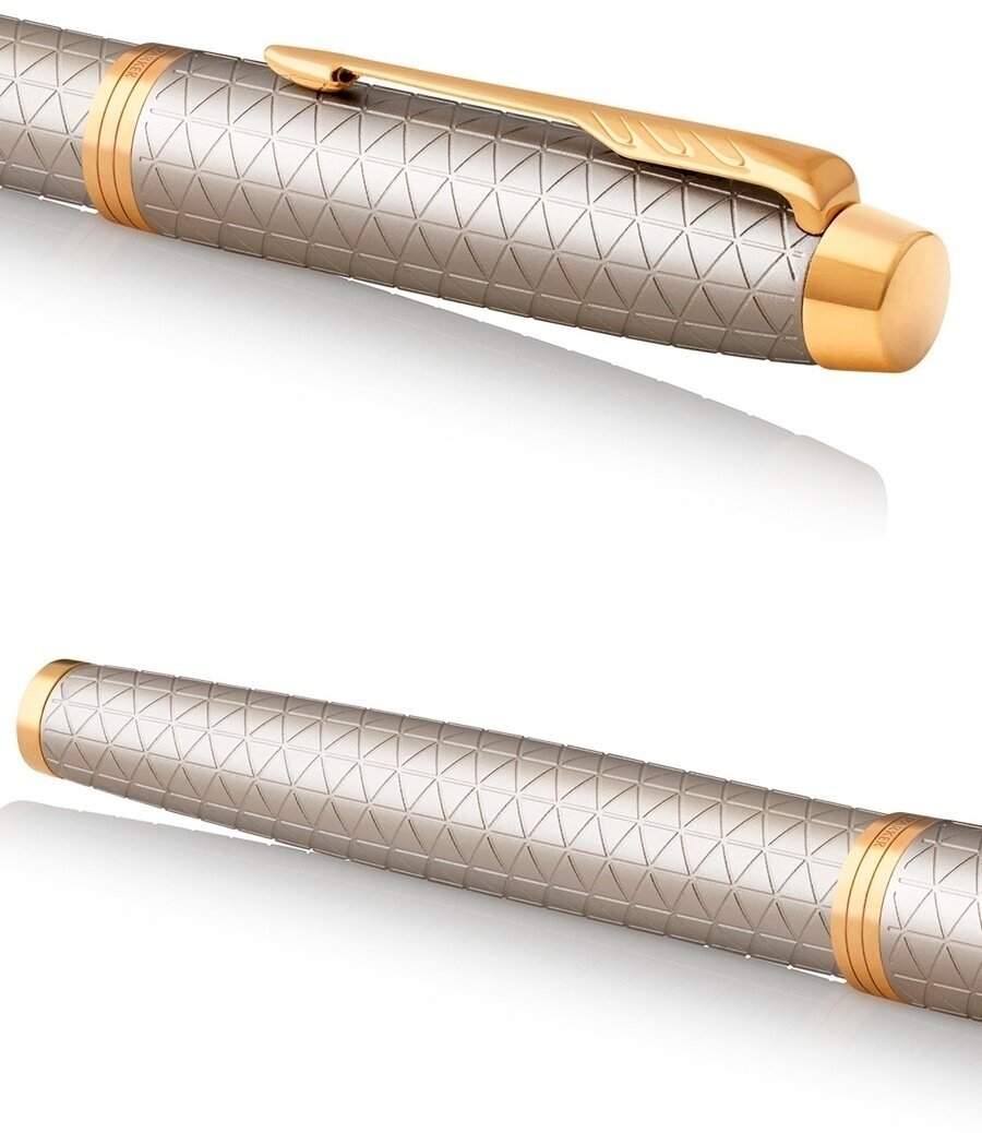 Ручка-роллер Parker Im Premium warm silver gt, корпус серебристый, матовый, позолоченные детали (1931686)