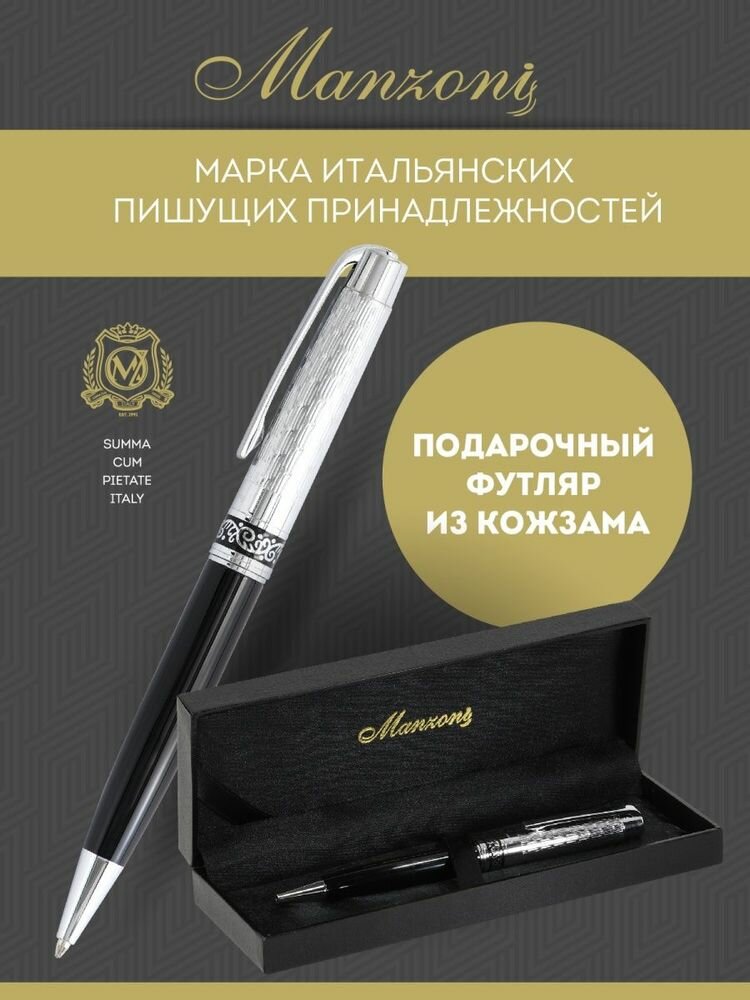 Ручка Manzoni шариковая подарочная TRENTO Классический синий 1 мм корпус металл черно серебр металл кож з футл