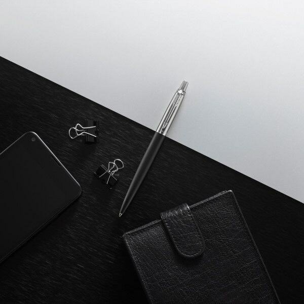 Ручка шариковая PARKER "Jotter Core Bond Street Black CT", корпус черный, детали хром, синяя, 1953184