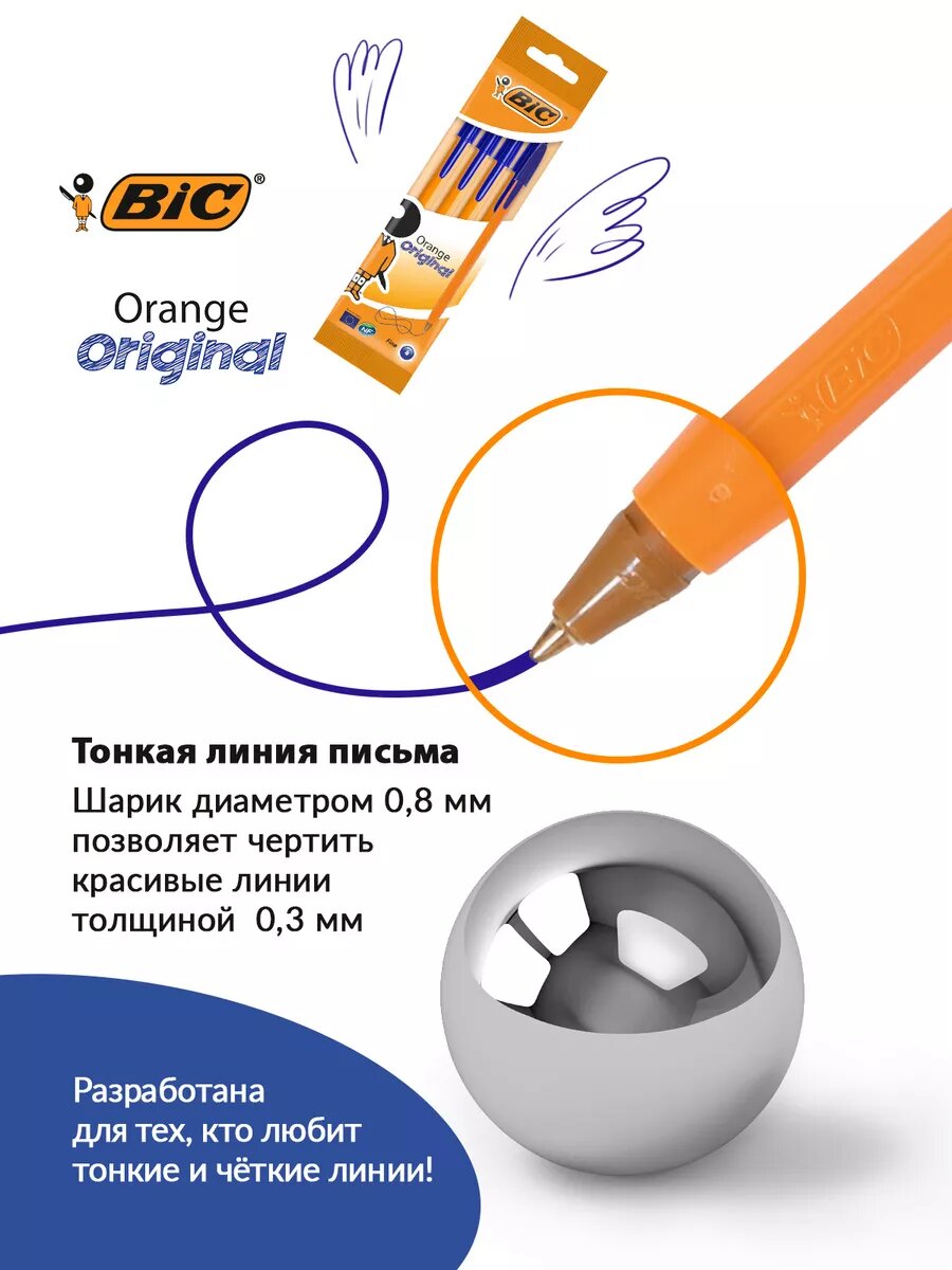 СохранитьBIC Ручка Оранж, тонкая линия, син, (пак. 4шт) интересное: