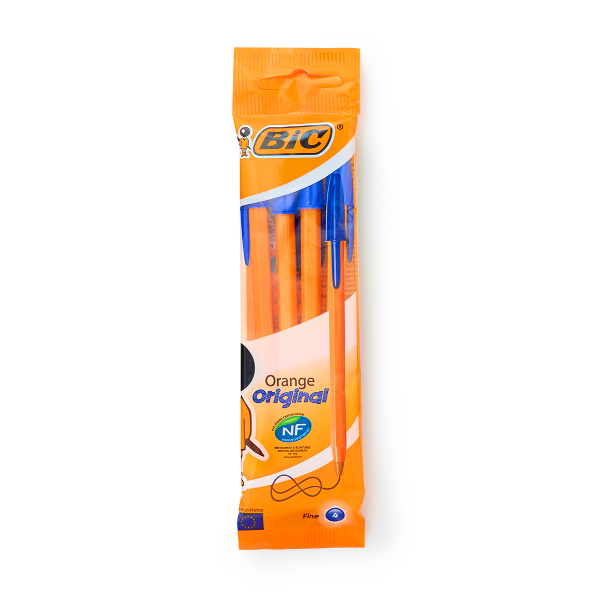 Ручки шариковые BIC "Orange Original Fine", набор 4 шт., синие, узел 0,8 мм, линия письма 0,3 мм, пакет, 83085