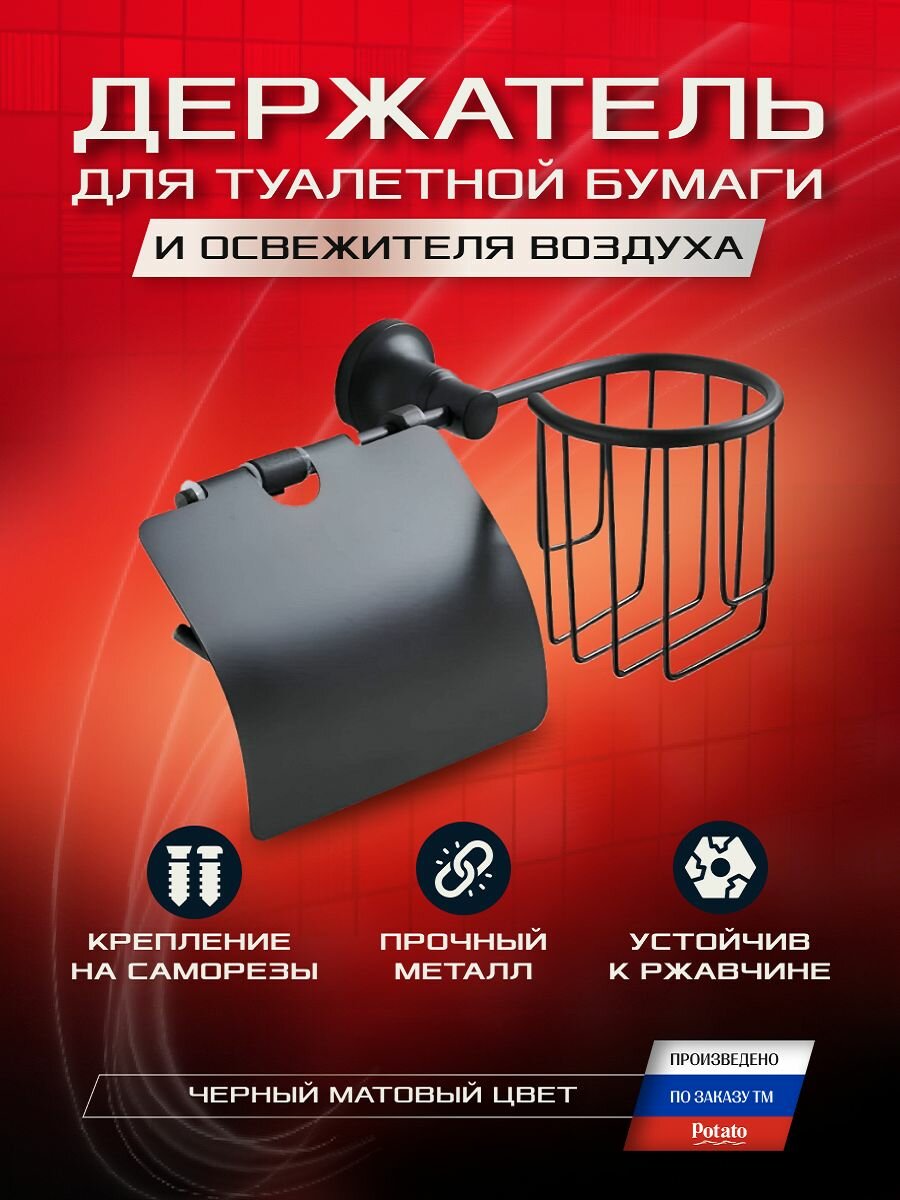 Купить Держатель для туалетной бумаги и освежителя воздуха Potato P1803-1BL настенный , черный