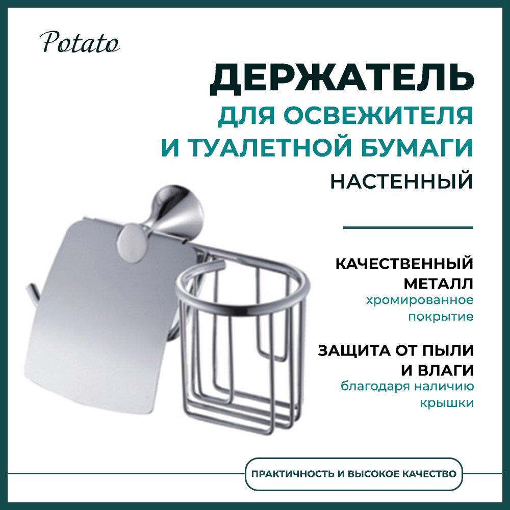 Держатель для туалетной бумаги и освежителя воздуха Potato P2903-1 настенный , хром