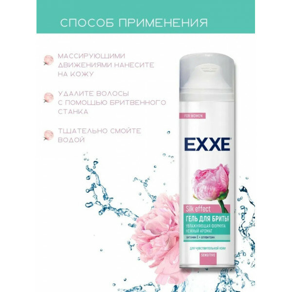 EXXE гель для бритья женский sensitive silk effect, 200 мл