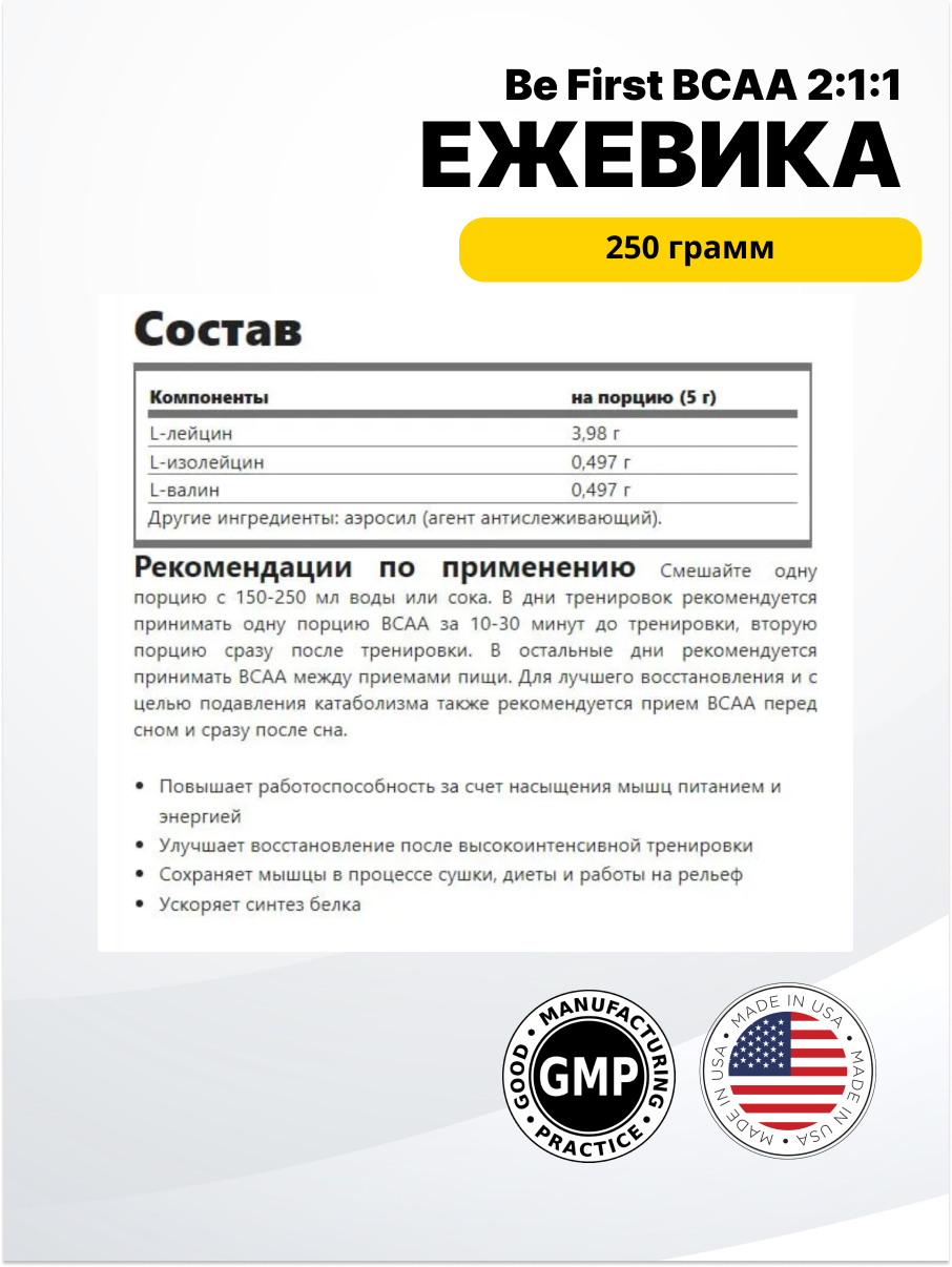BCAA 8:1:1 Be First BCAA 8:1:1 Instantized powder 250 г, Нейтральный