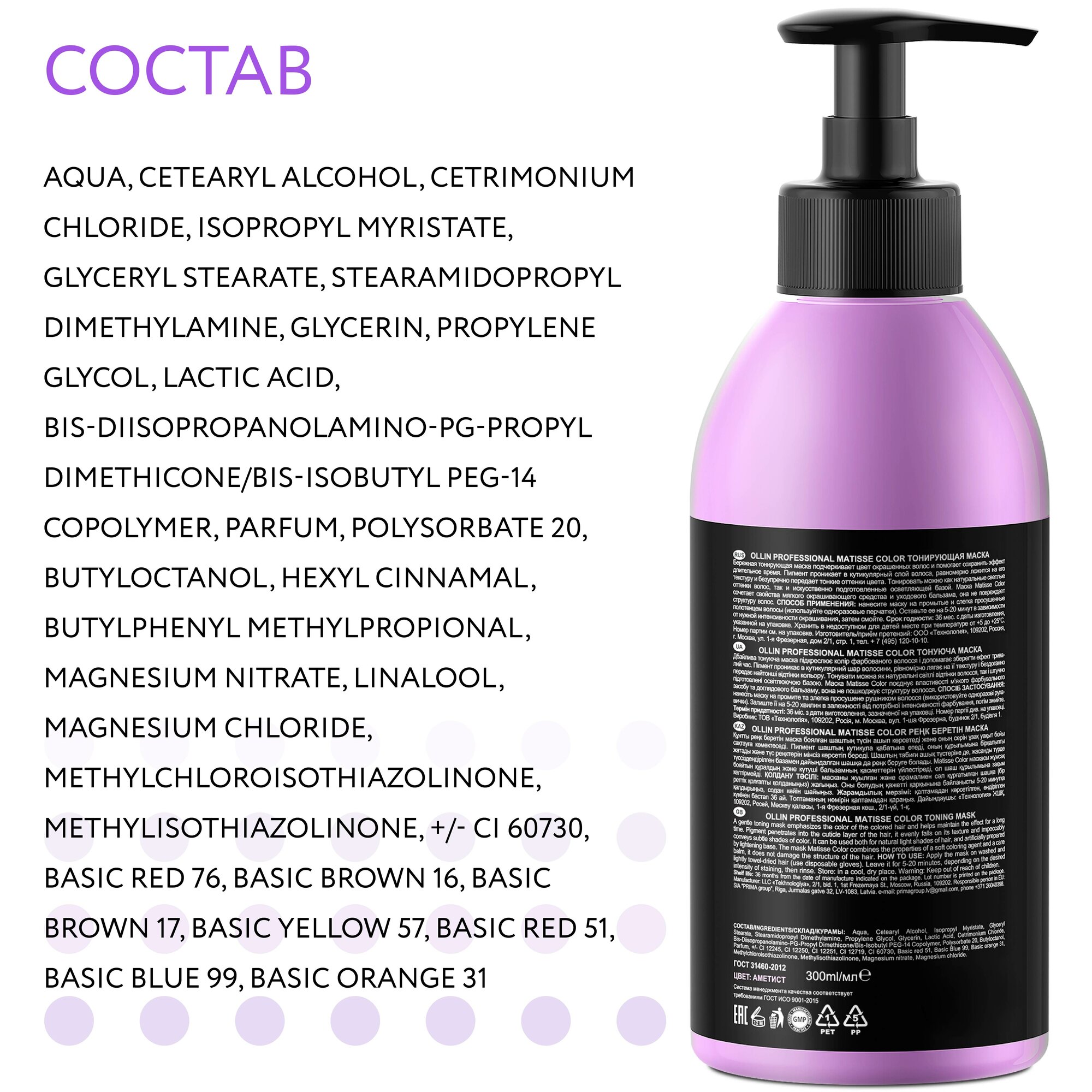 Купить OLLIN Professional Matisse Color Amethyst Маска для волос тонирующая, 300 г, 300 мл, бутылка