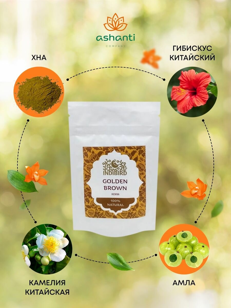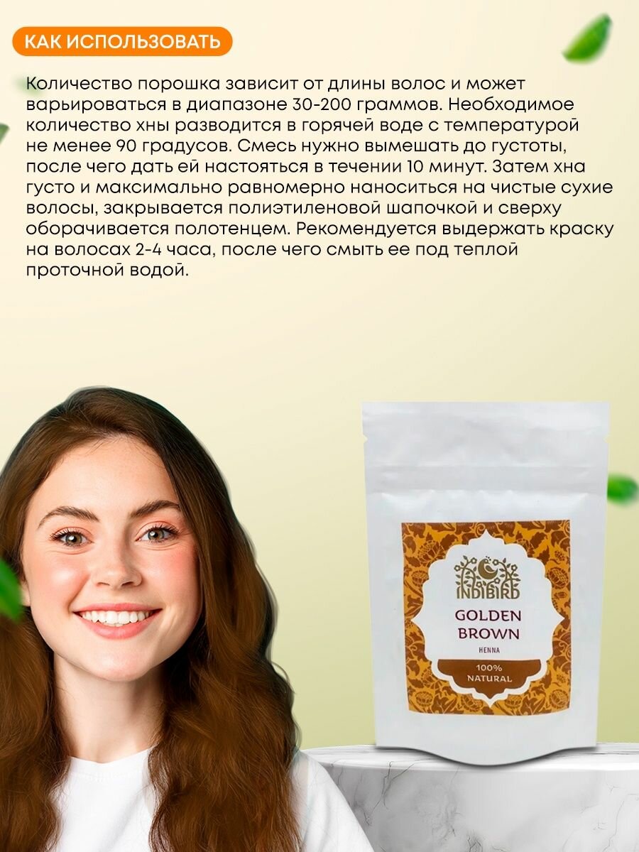 Натуральная краска для волос золотисто-коричневая Хна Indibird, 100 г